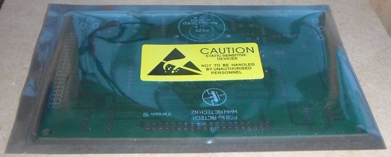 The board with the pre-fitted SMD will be supplied sealed in an anti-static bag, and constructors are reminded that full anti-static precautions need to be observed when handling this board outside of it's static sheilding bag. Incorrect handling of the board or assembly of this kit is not covered by any warranty offered by Rictech Ltd.