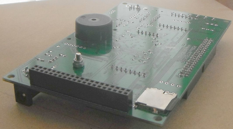 This board connects to CON10 on the E100 board, via eight DuPont linking wires(not supplied).The kit includes the PCB, SD-card socket, resistors, LED, pin-header and capacitor.